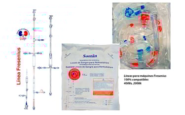 Con configuraciones específicas para cada modelo de máquinas de hemodiálisis, FRESENIUS, BBRAUN, AK98, BELLCO Y NIPRO; con 30 piezas cada caja